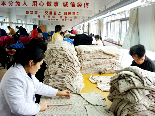 山東乳山工藝品有限責(zé)任公司始建于1956年,注冊資金1006萬元,占地面積1.19萬平方米,建筑面積2.55萬平方米,轄衣衫廠、抽紗廠兩個分廠,加工銷售機(jī)繡制品、針織衣衫、手工藝品、紡織輔料等。年加工總量880萬件(套),年銷售收入1.8億,80%以上產(chǎn)品銷往美國、加拿大、韓國、日本等國家和地區(qū)。現(xiàn)有在職職工600人。擁有各類毛衫生產(chǎn)設(shè)備1000多臺,公司總資產(chǎn)1.4億。